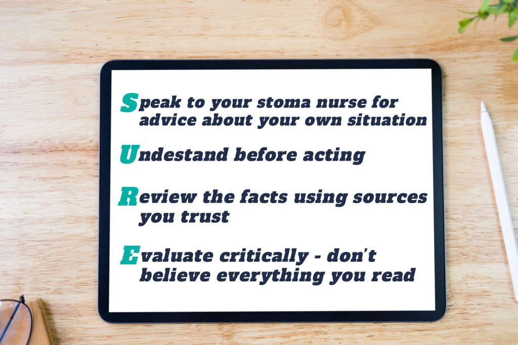 “AI is exciting because it puts knowledge at our fingertips, but in stoma care context matters. It can point you in the right direction, but the detail and reassurance still comes from trusted professionals and organisations. Always be mindful and use the steps to below to be SURE you’re getting the correct facts.